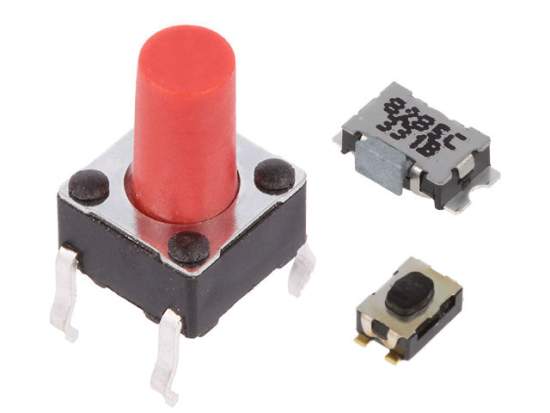 TME offers high-quality TACT momentary switches manufactured by C&K. They are multi-purpose electrical switches and can be used in electrical circuits of industrial machines and devices. Their advantages include high reliability and IP40 – IP68 rating. TACT switches can be mounted on PCBs with the use of either THT or SMT technology. C&K offers switches with different designs, e.g. various configurations of actuator height and settings, and also the operating force.