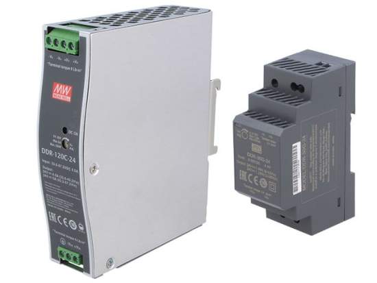 DDR is a series of DC/DC power supply units for DIN-rail mounting. Their characteristic feature is a particularly slim enclosure profile, which minimizes space occupied in a control cabinet. Furthermore, the new power supply units from MEAN WELL are protected against overload, overvoltage, short circuit, reverse polarity, and insufficient input voltage. An important feature of the DDR series is the reinforced I/O insulation of 4kV.