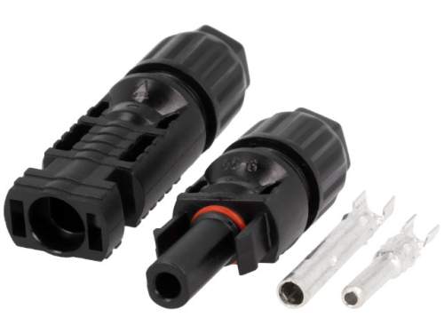 MC4 is a connector standard used to connect photovoltaic panels. The complete set consists of a male plug and a female plug for self-assembly on a wire with a cross-section of 2.5mm2up to 4mm2. Such a connection is IP67-rated.