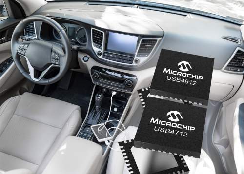 Extending its portfolio of leading USB automotive products, Microchip Technology Inc. (Nasdaq: MCHP) today introduced new single-port products to its USB 2.0 Smart Hub IC family, giving automakers more options to fit varying design needs. Providing precisely what is required for single-port implementations, the USB4912 and the USB4712 are ideal for adding a single port under the radio, in the center console or alongside wireless charging implementations.