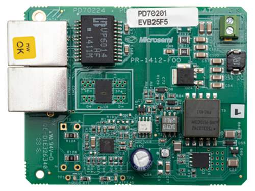 The PD70201EVB25F-5 evaluation board from Microchip Technology provides designers with the environment needed for evaluating the performance and implementation of power distribution applications based on the PD70201 device. The board uses a single power distribution (PD) device, PD70201ILQ, to support the detection, class, and power supplying phases on the 2/4 pairs of the Cat5 cable. PD70201ILQ supports a standard IEEE 802.3at Type 2 interface.