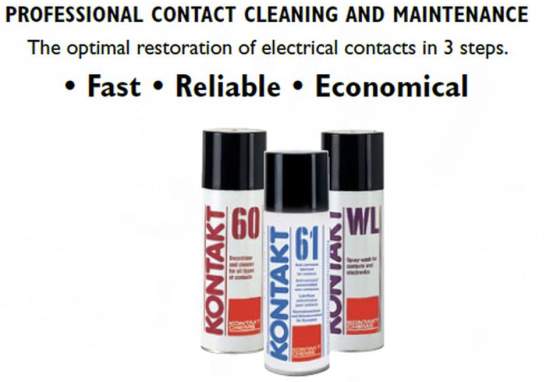 For many years, Kontakt Chemie has been offering 3 products for perfect contact treatment in three steps. These are KONTAKT 60, KONTAKT WL and KONTAKT 61.