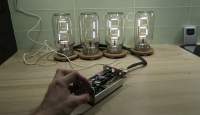 This is a home brew 56 Volt LED filament clock, I have tryed to replicate the nixie tube look. I have used a arduino with a RTC a ebay modified buck converter XL6009. The driver is MPSA42 and MPSA92 transistors. The washers in front are used for nav buttoms (adjust of time and show temperatur) I guess it could be called a little cyperpunk design.