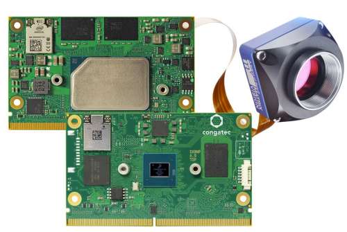 congatec and MATRIX VISION will showcase their new SMARC Computer-on-Module platform with PCI Express (PCIe) based camera module extension for the first time at Vision in Stuttgart (Hall 8 / Booth C30). With no overhead and no need for additional interfaces such as GbE, USB or MIPI CSI, image data are written directly into the RAM of the SMARC module with virtually no latency and higher bandwidth [1]. MATRIX VISION’s Sony Pregius sensor based camera modules deliver image data to congatec’s Intel Atom processor based SMARC module at speeds of up to 226.5 frames per second (FPS) and with 1.6 megapixel resolution. Such high-speed transmission enables hard real-time at clock rates of approximately 4 milliseconds. This clocking is also a great fit for actuator commands over TSN (Time Sensitive Networking) based Ethernet, which provides hard real-time at clock rates <1 millisecond. Typical use cases are found in industrial machine vision applications in electronics and semiconductor manufacturing, the automotive industry, food and beverage, pharmaceuticals, packaging and printing. Other markets include healthcare, intelligent transportation systems (ITS), as well as airport security and surveillance systems.