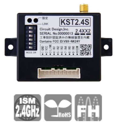 KST2.4S/KSR2.4 has an embedded radio module NK-2.4Y that has obtained US FCC certification and Japan radio type approval. There is no need to apply for any additional radio certification.