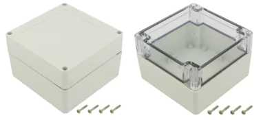 The enclosures are available in dimensions from 45 mm x 45 mm x 40 mm up to 190 mm x 240 mm x 60 mm (in various proportions).