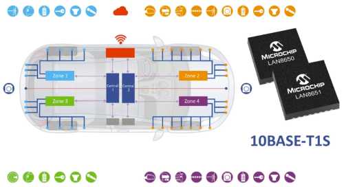 Automotive designers are creating new zonal architectures in automotive applications with 10BASE-T1S Ethernet solutions. The 10BASE-T1S technology makes it possible for low-speed devices to connect to a standard Ethernet network, eliminating the need for dedicated communication systems. Expanding its portfolio of automotive-qualified Ethernet solutions, Microchip Technology (Nasdaq: MCHP) today announces the new family of LAN8650/1 MAC-PHY devices qualified for automotive applications. The LAN8650 and LAN8651 MAC-PHYs include a Media Access Controller (MAC) and Serial Peripheral Interface (SPI) to connect devices at the edge of automotive networks.