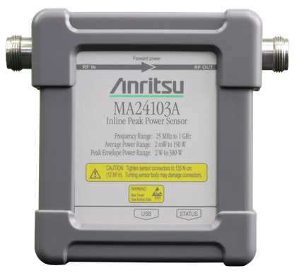Anritsu Company is proud to announce the launch of our new inline power sensor MA24103A that is designed to measure accurate Peak and True-RMS average power measurements from 25 MHz to 1 GHz and 2 mW to 150 W power range.