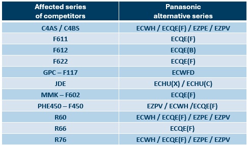 Panasonic film caps series as alternative to competitors’ several EOL announcements