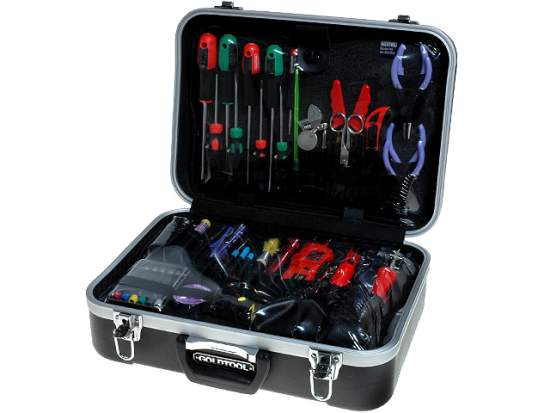 TME’s offer includes 85 pcs. toolsets in a durable plastic case from GOLDTOOL. Thanks to their versatility, these toolsets are recommended for most maintenance and workshop jobs both on premises and in the field. The GT-900B toolset includes all of the most frequently used tools, such as screwdrivers (flat-bladed, cross-head, precision), pliers, insulation stripper, 30W soldering iron, 3.6V battery screwdriver, and many others. The case is additionally reinforced with aluminium profiles, and two key locks ensure higher security.