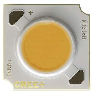 Designed for best-in-class lumen output and efficacy at high drive currents, the XLamp CMA series features an enhanced metal COB design that ensures superior thermal management and reliability. Devices are available in 15mm, 18mm, 25mm and 30mm square package sizes, with 9mm, 12/14mm, 19mm and 23mm light-emitting surface (LES) sizes respectively. They can be driven at up to 1050mA, for the 15mm parts, or 3600mA for 30mm parts, generating typical radiant flux from 16W to 82W respectively.