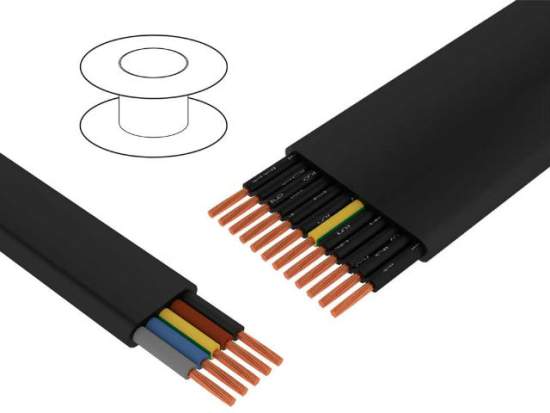 Плоские провода TKD применяются как и провода питания и управления в подвижных кранах, подъемниках, лифтах и других транспортирующих устройствах. Выполнены в изоляции ПВХ, в черном цвете, с жилами, уложенными параллельно. Провода отвечают норме H05VVH6-F – до сечения 1мм2 и норме H07VVH6-F – сечением свыше 1,5мм2.