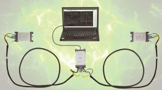 Another key benefit of the distributed modular VNA solution is the MN25132A control module, which greatly simplifies installation. It acts as a junction for the cables and supplies power to the two MS46131A VNAs. There is no need to attach separate power supplies to the two VNA heads. The control module also interfaces the two VNAs to a laptop configured with ShockLine software.